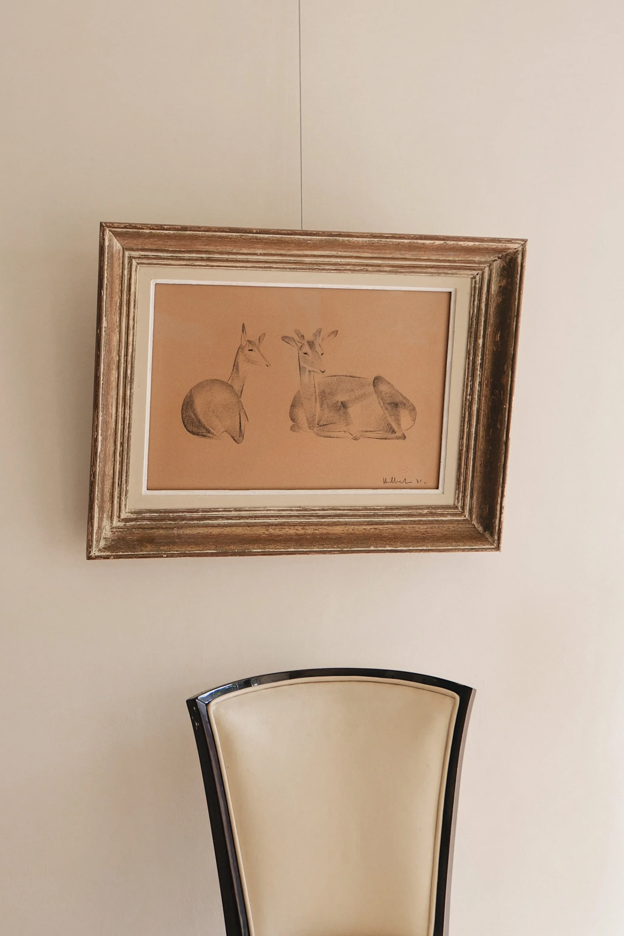 A beautiful Georges Hilbert (1900-1982) drawing of two deer.